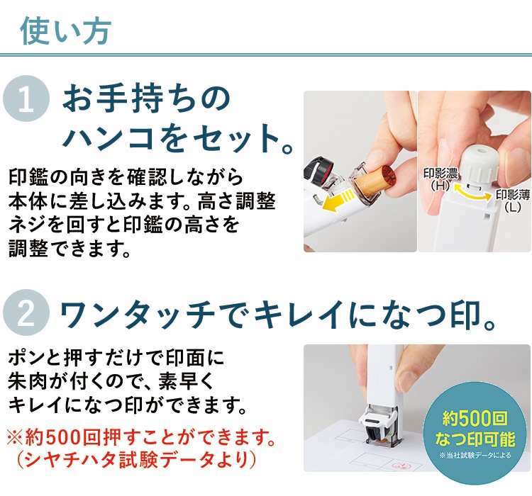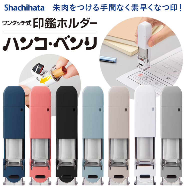 インキパッドのついた印鑑ホルダー「ハンコ・ベンリ」は、朱肉を使う認印をセットするだけで、常に印面に朱肉がつき、シヤチハタのようにポンポンなつ印ができるベンリな印鑑ホルダーです。朱肉は交換可能なカートリッジ式!朱肉は補充なしで約500回使えます。